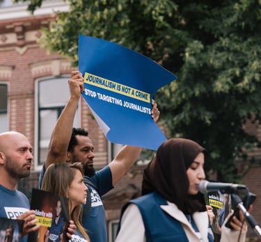Wij strijden voor mensenrechten en persvrijheid.